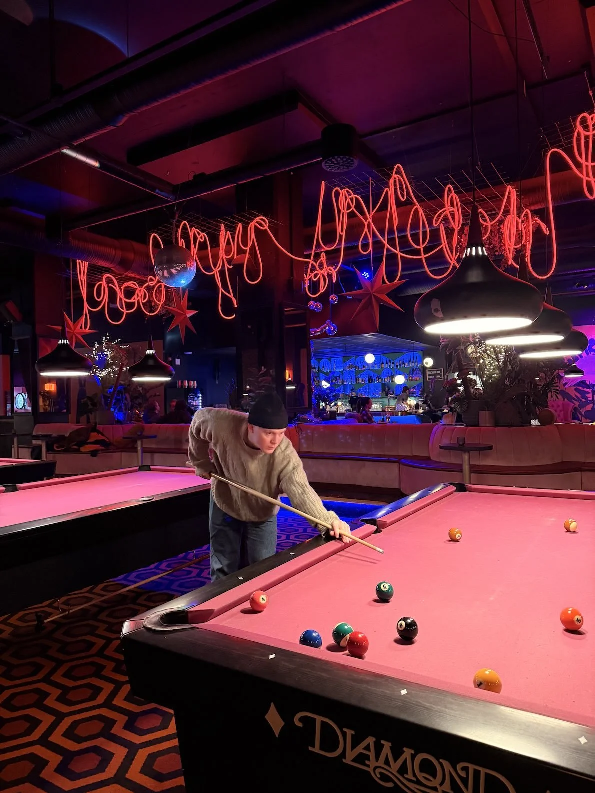 Cue ser forholdsvis anonym ut på utsiden, men langt mer spennende når du først kommer inn. Her møtes du av farger, lys og biljardbord på rekke og rad. Perfekt for første date, dobbeldate eller hundrede date om dere vil holde det chill, men fortsatt gøy. Og går det litt for bra (eller veldig dårlig)? Null stress, de har også dart!