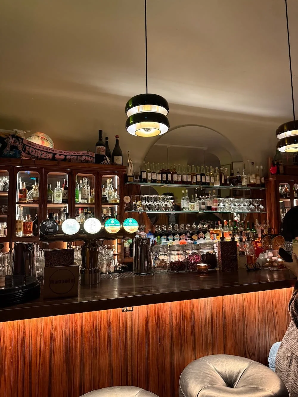 Baren byr på drinker til 168 kr (!). Foruten drinkene finner du et godt utvalg øl og vin, og hvis dere skulle bli fysne, er det mulig å bestille små snacks som ost, skinke, oliven og sylteagurk, eller bare potetgull. Her er det med andre ord lett å bli sittende til langt, langt på kveld. Så planlegger du en eventyrlig date, er dette stedet å dra.