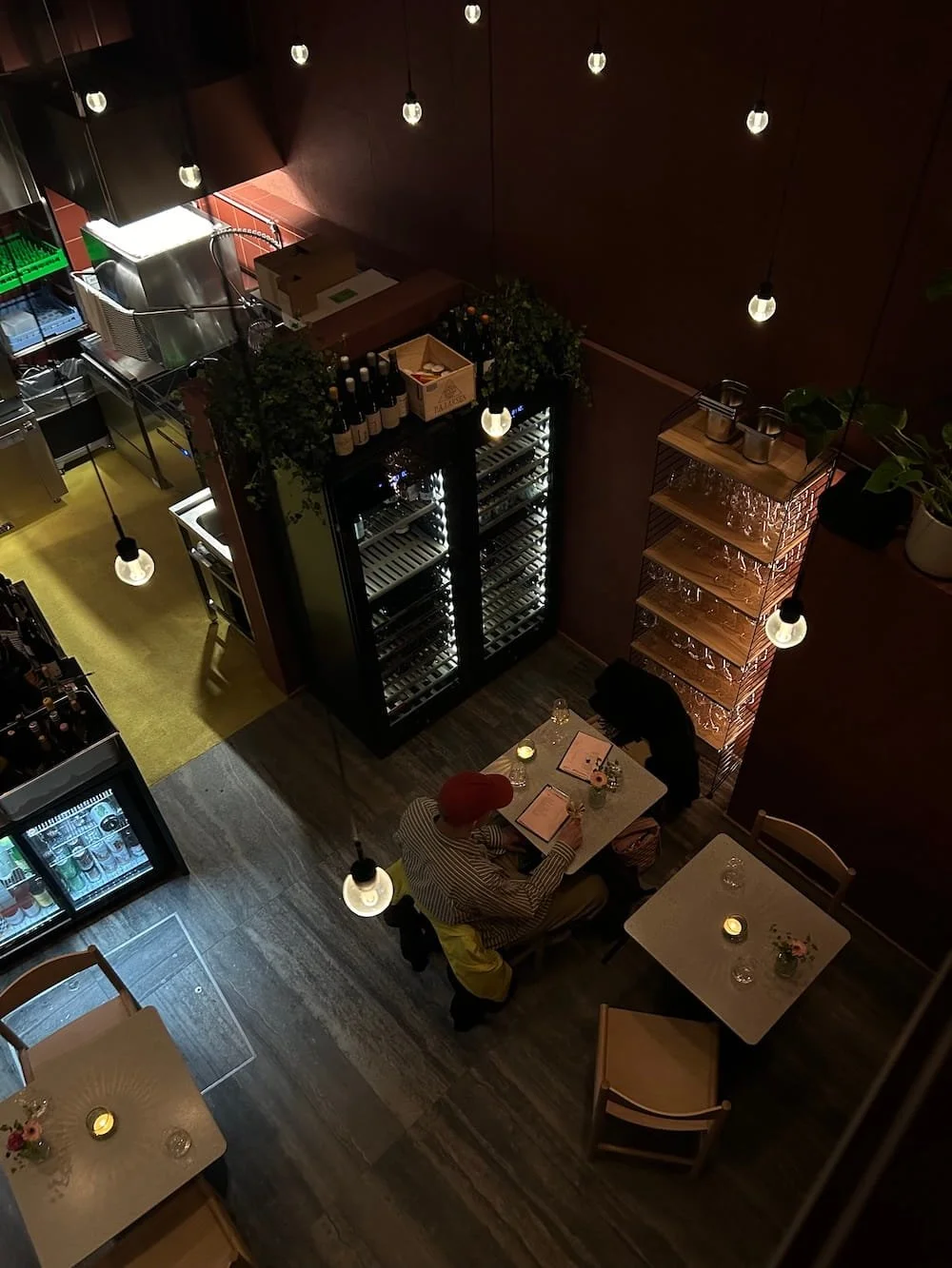 Vinlisten er håndplukket, med glasspriser fra 150 til 210 kroner, og byr på hvit, rød, oransje og sprudlende musserende. Mørkt tre, levende lys og grønne planter gir lokalet et lunt preg, og gjør dette til et fint sted for en koselig date! Når våren melder seg, åpner det også for bakgårdsromantikk (noe vi gleder oss til!).