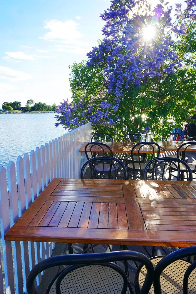 Etter badingen var det på tide med litt mat igjen, denne gangen middag. Når vi skal kose oss skikkelig en sommerdag faller ofte valget på restauranten med samme navn som øya, Lille Herbern. Uteserveringen er noe av det beste i Oslo, og gir assosiasjoner til sørlandet. Her sitter man rett ved vannkanten, kjenner saltvannslukten og har en nydelig utsikt.