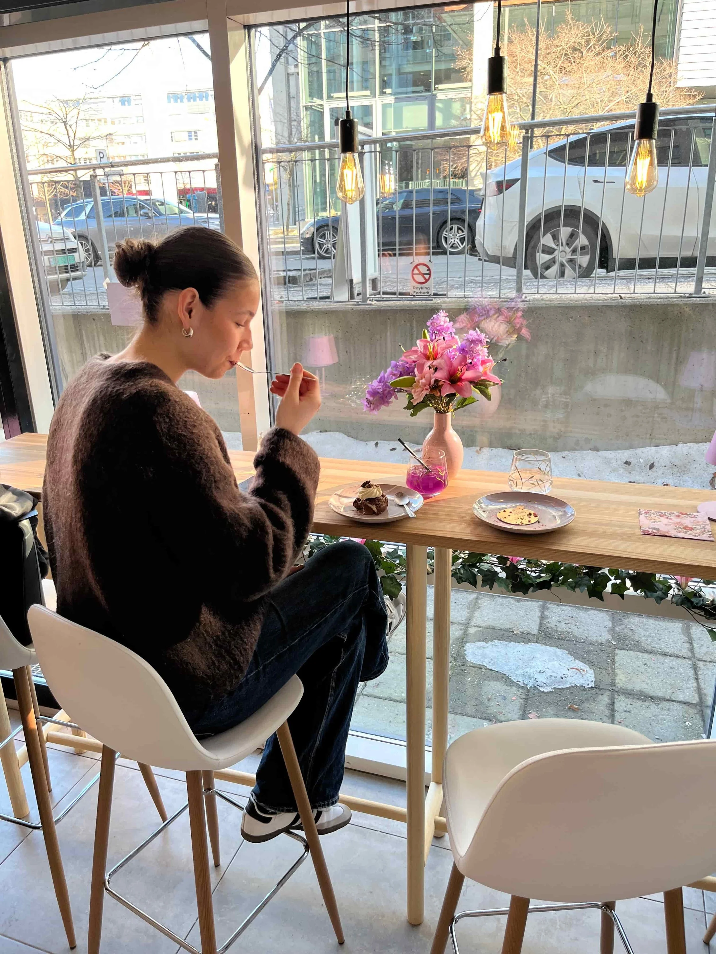 Bak disken møter du 25 år gamle Linda, som lager alt av bakst selv. Menyen balanserer mellom faste favoritter og nye kaker som jevnlig introduseres, så det alltid er noe nytt å prøve. Lokalet er lite, med lilla detaljer som matcher navnet. Her kan du sitte langs vinduene, synke ned i sofaen med noe søtt i hånda, eller ta med deg noe godt hjem.