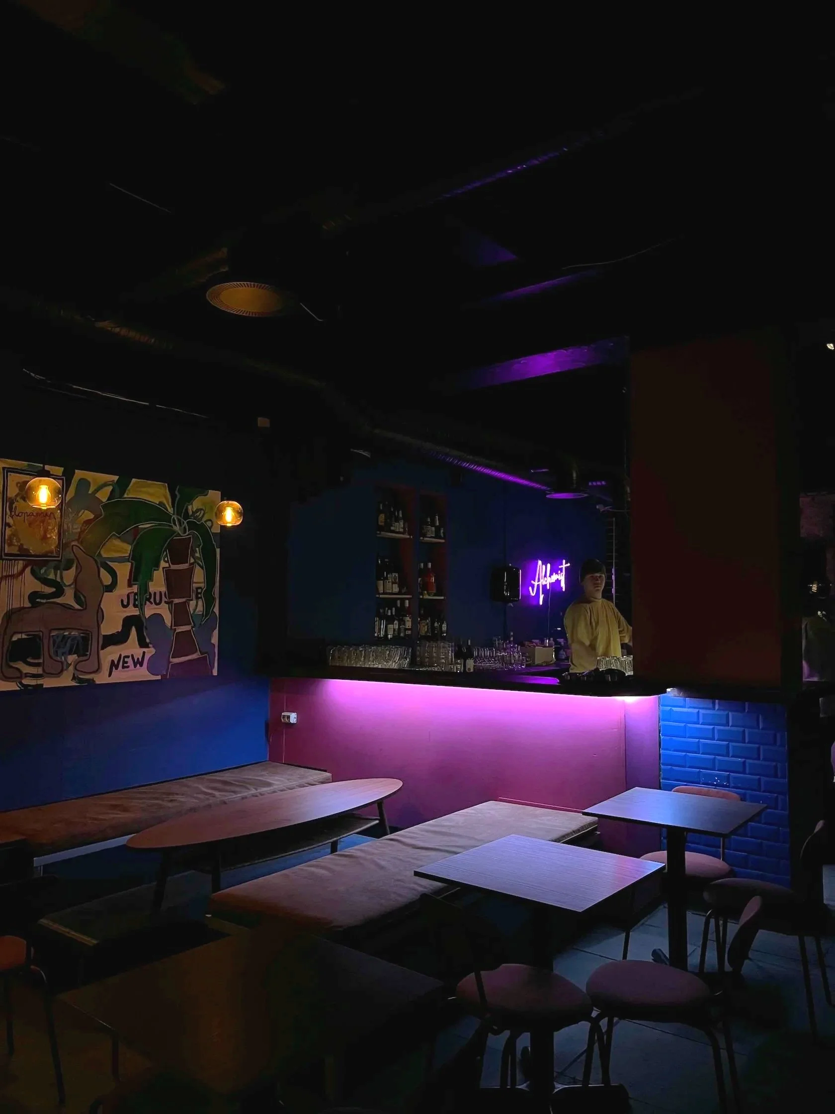 Lokalet er relativt enkelt og nedpå, men farger, murstein på veggen og malerier gir lokalet litt energi. Med en fin bakgård og mange sitteplasser inne er det store muligheter for å mingle sammen med venner og nye (og det er selvfølgelig plass til å danse).