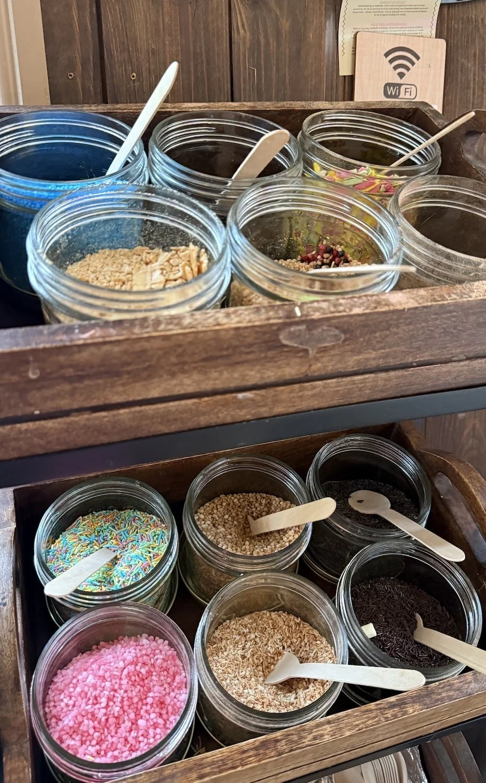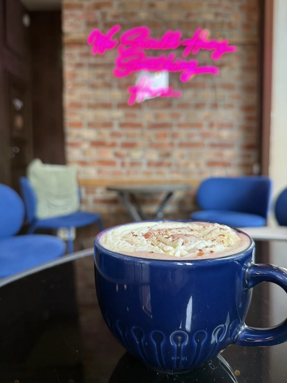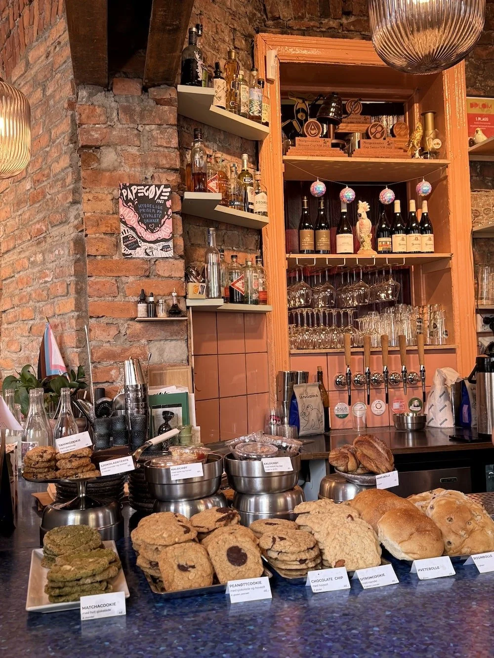 Cocoa skiller seg ut med sin egen strøsselbar, hvor du kan toppe kakaoen med alt fra sjokoladebiter og kjeks til tutti frutt. Noe som var overraskende godt oppi! Lokalet er lyst opp av fargerike neonskilt, og med mange sitteplasser er dette et fint sted å søke ly når regnet pisker mot rutene.