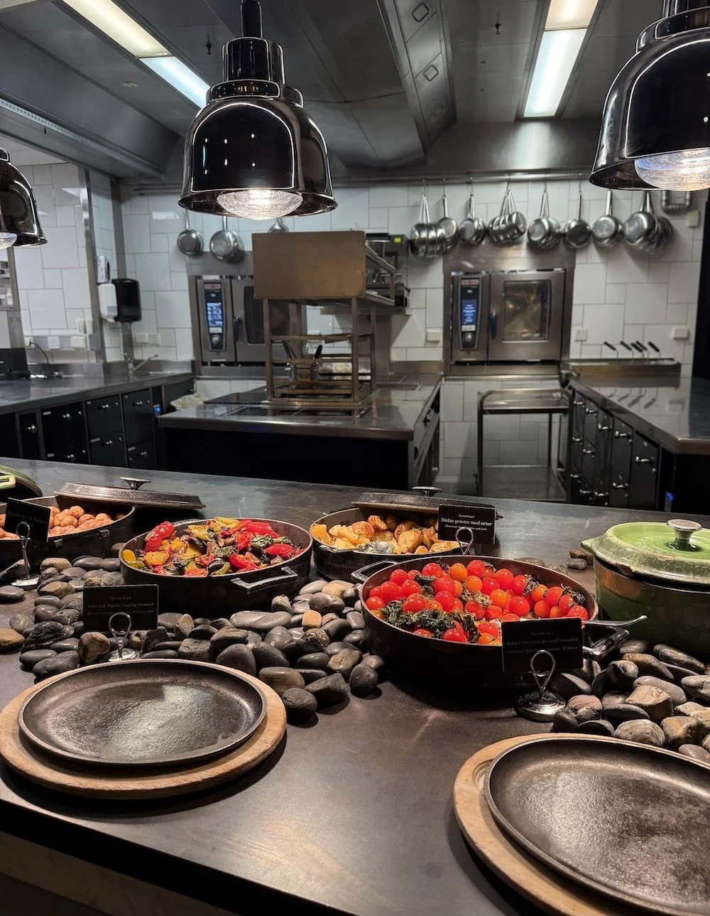De har også en egen yoghurtstasjon hvor toppingmulighetene er mange. Her kan du velge mellom granola, frokostblandinger, nøtter, tørket frukt og intet mindre enn 3 ulike honninger.
