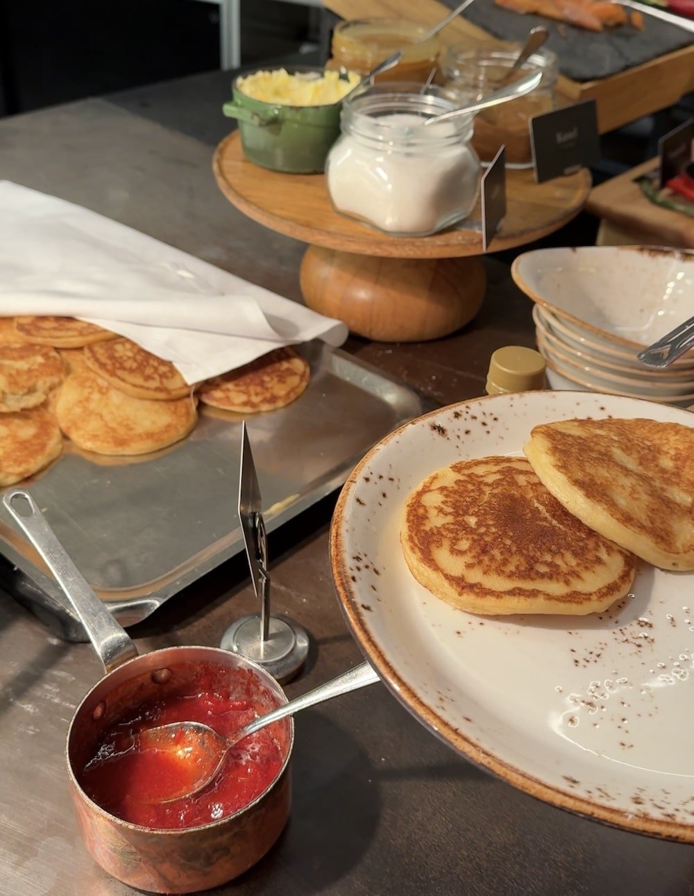 Hotellfrokost er ikke helt det samme uten et søtt innslag (eller to). For oss ble deres luftige pannekaker med rørt jordbærsyltetøy en klar favoritt! En annen søt fristelse som fanget oppmerksomheten vår var deres hjemmelagde brunostkjeks. Disse er faktisk lagd med brunostrester, et grønt knep vi kan like.