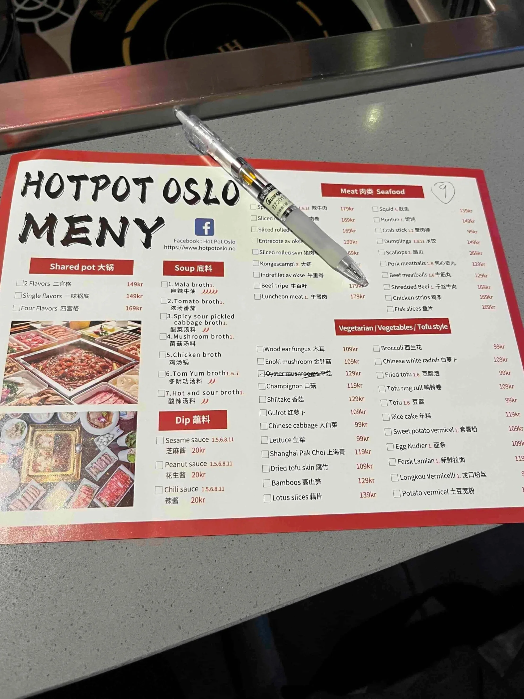 Så fort vi setter oss ned blir vi introdusert til menyen og hvordan den fungerer. Her er det tradisjonell hotpot fra Szechuan som er i fokus.