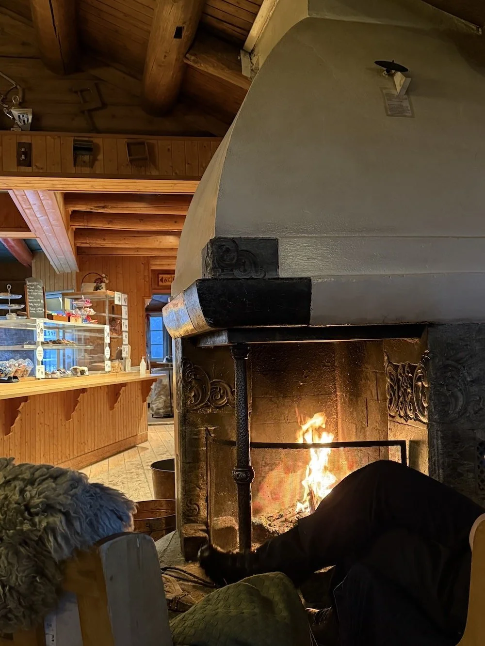 Med mange sitteplasser, fyr i peisen og god mat er det lett å glemme tiden. Vi rakk akkurat ned før det ble helt mørkt. Så et lite tips: Ta med hodelykt, for her er det lett å bli sittende litt lenger enn planlagt, spesielt når påfyll av drikke bare koster 17 kroner.