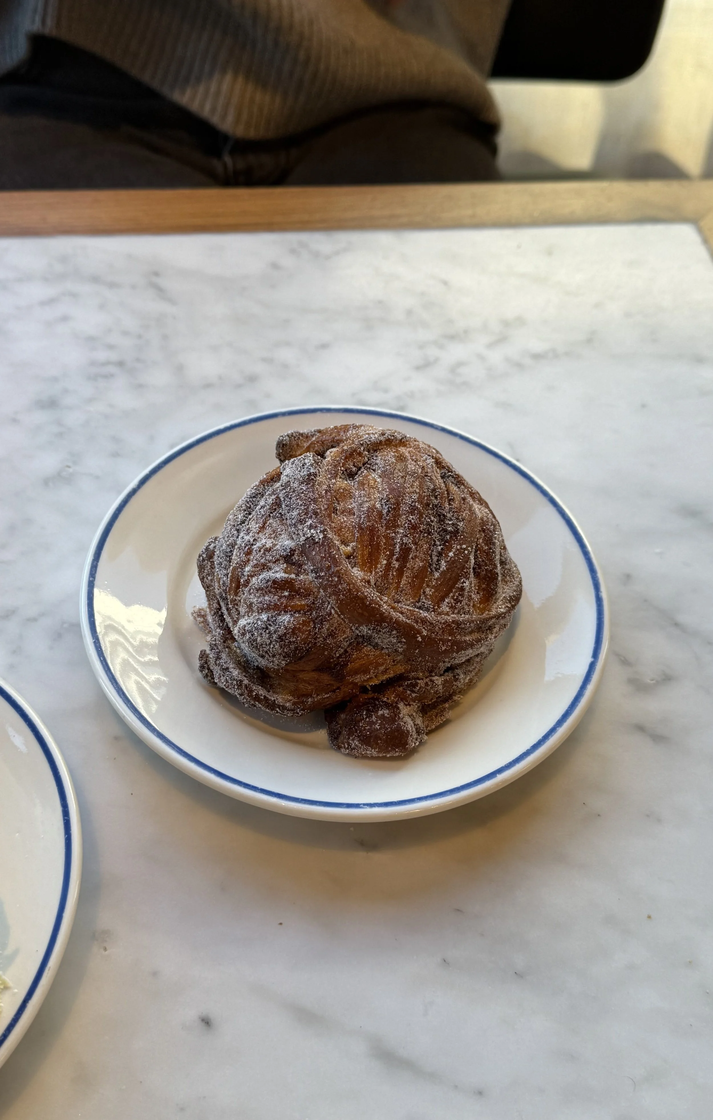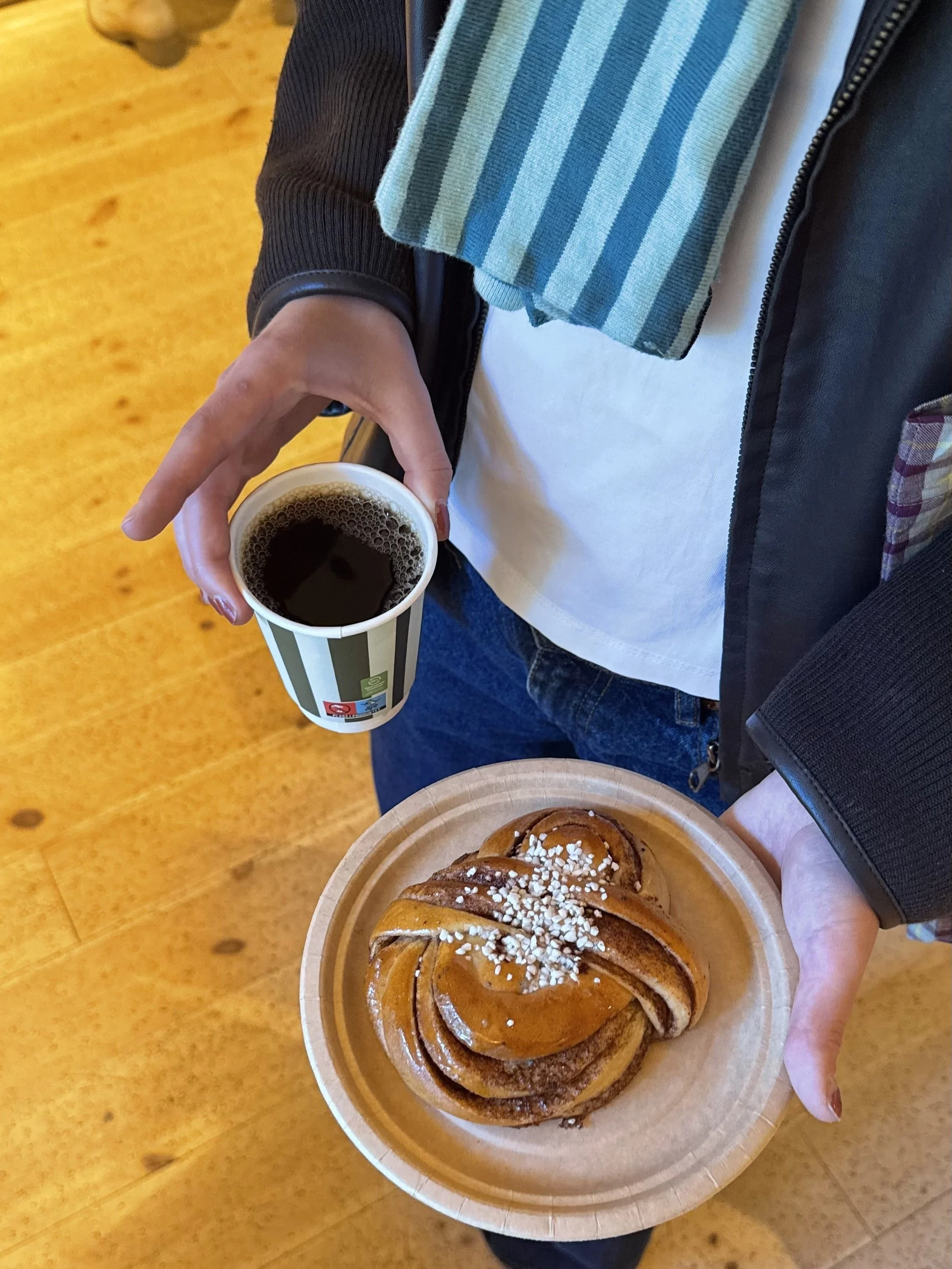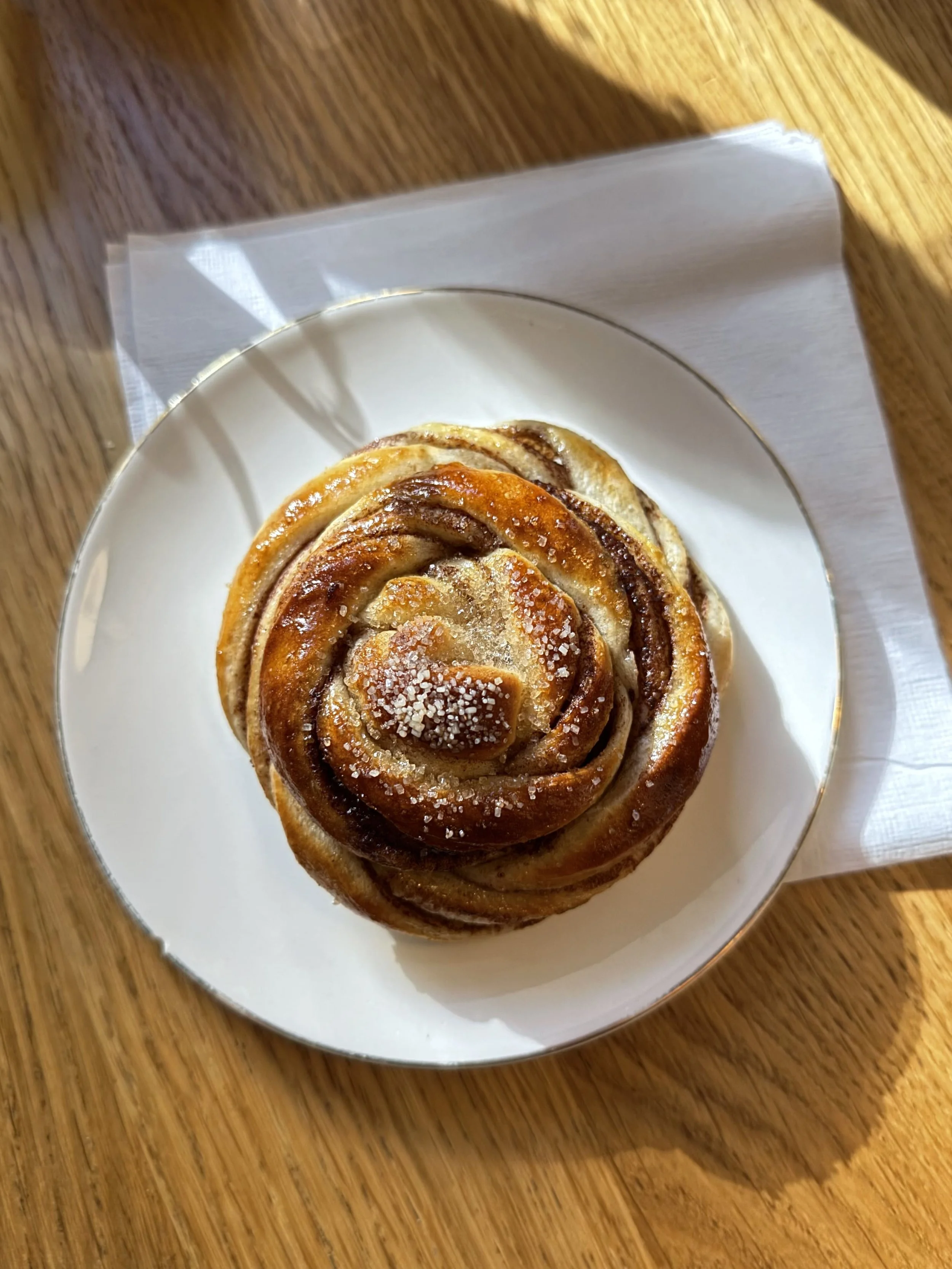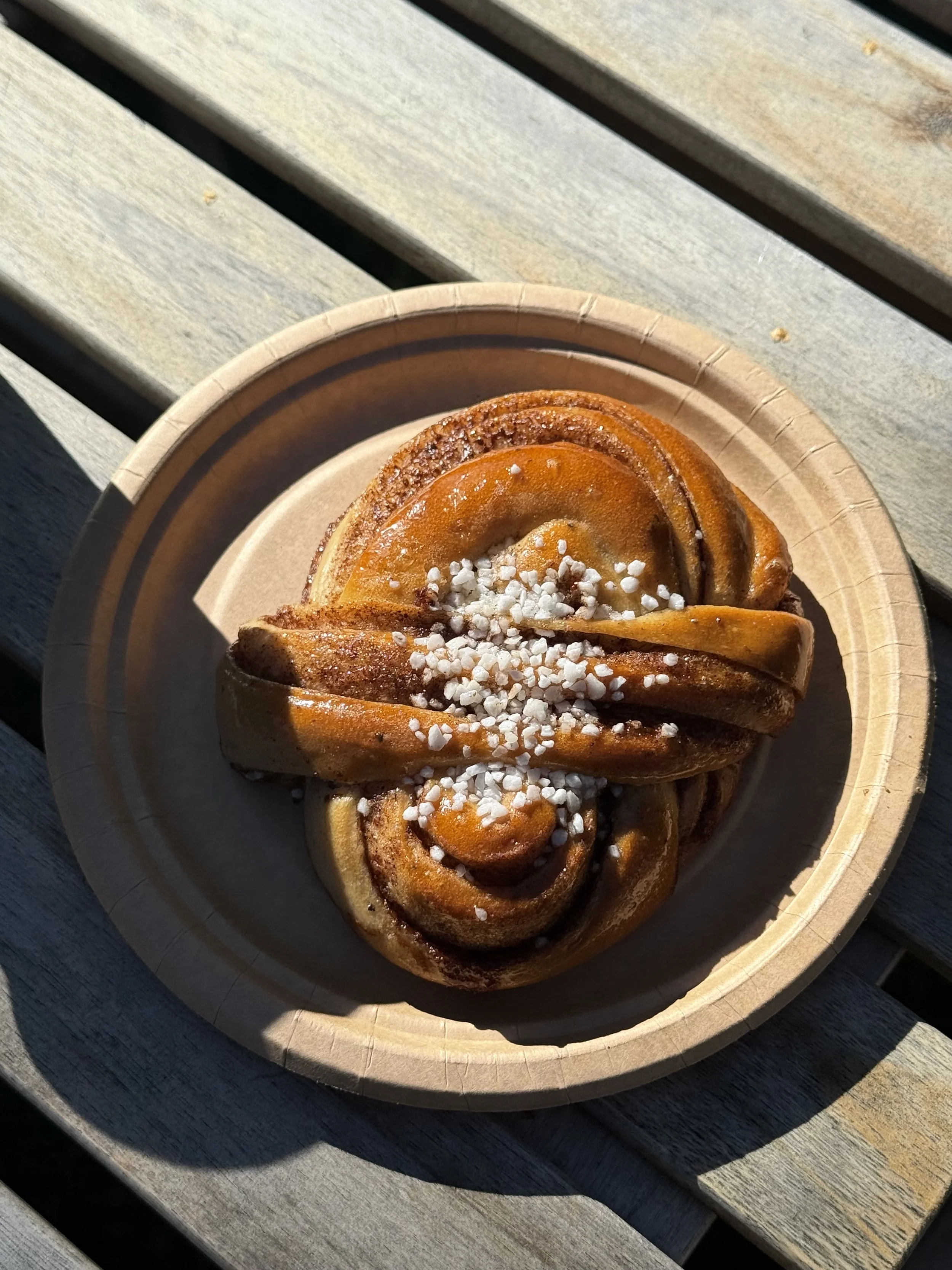 Når du trår inn døra til dette rustikke bakeriet, merker du raskt at surdeigsbaksten tas på alvor. Er du glad i en god surdeigsbolle (som Mari K), bør du helt klart teste The Little Pickle’s kanelbolle (50 kr) på selveste dagen. Den kommer på en nydelig asjett, er stor, fint flettet og delikat toppet med sukker. Smaken er mild og balansert, og konsistensen oppfyller det man ønsker fra en surdeigsbolle; seig og fersk! Her er det også både stilig og koselig.