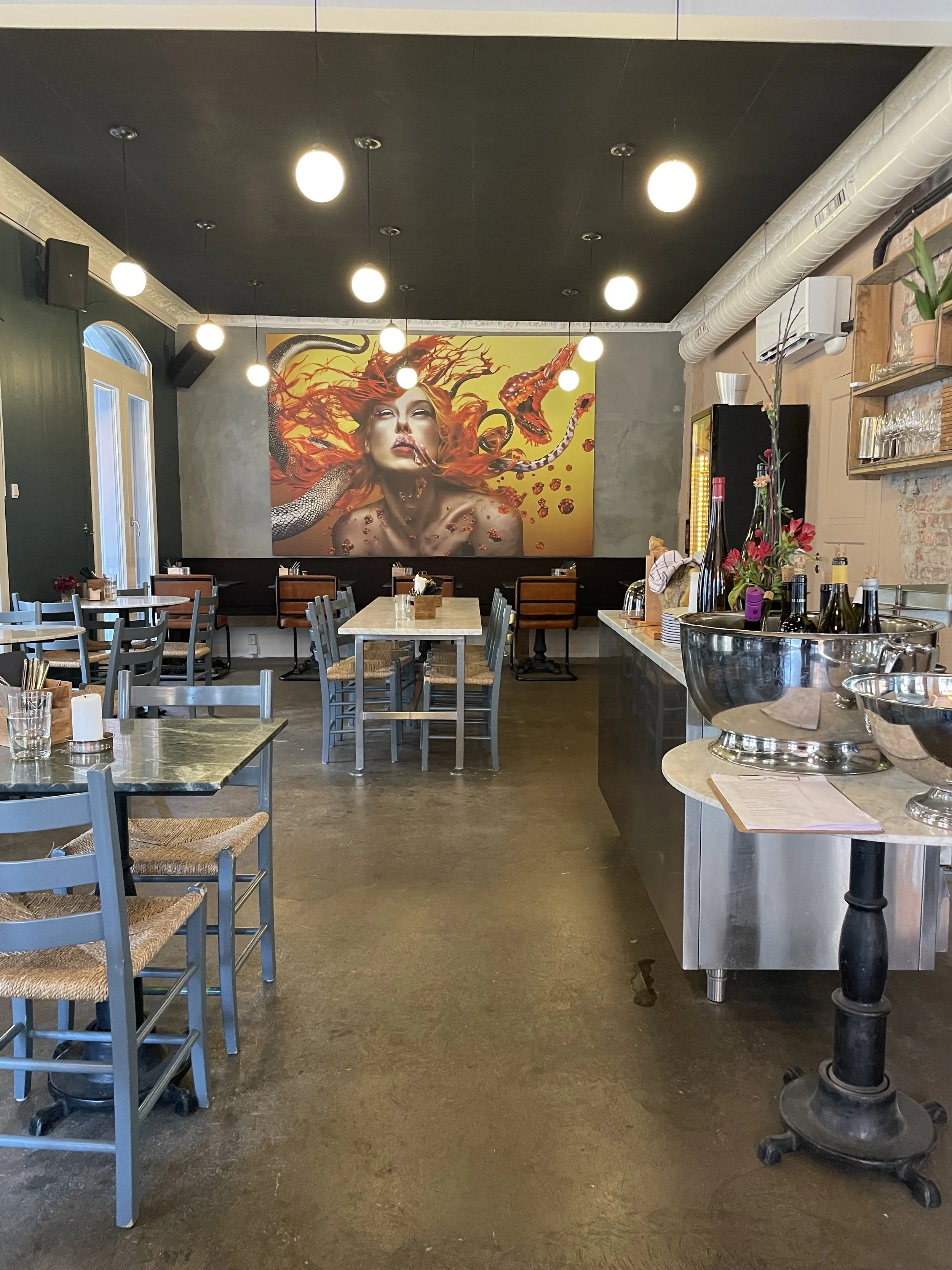 Den fransk-inspirerte nabolagsrestauranten byr både på middag og brunsj. Du kan forvente deg en unik, økologisk og leken meny med både tradisjonelle retter og nyskapende smakskombinasjoner som vil variere etter tilgang på råvarer. Sjefen bak sier at han ønsker å gi gjestene en ala carte meny som er uformell, men av høy kvalitet - i en varm og avslappet atmosfære. Dette stemte godt overens med følelsen vi fikk under vårt besøk.